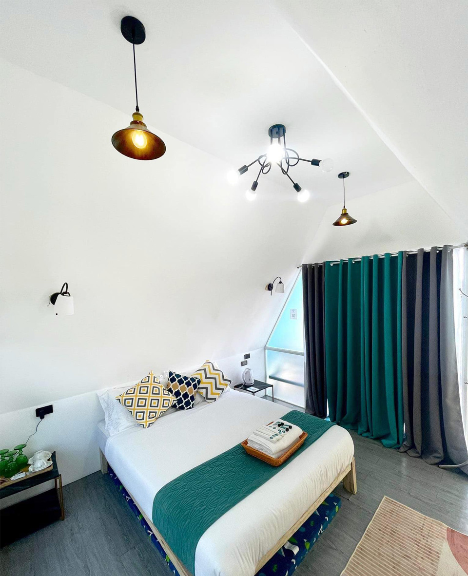 Our Maldivian-inspired villas built in A-frame style are just steps away from the sandy beaches.